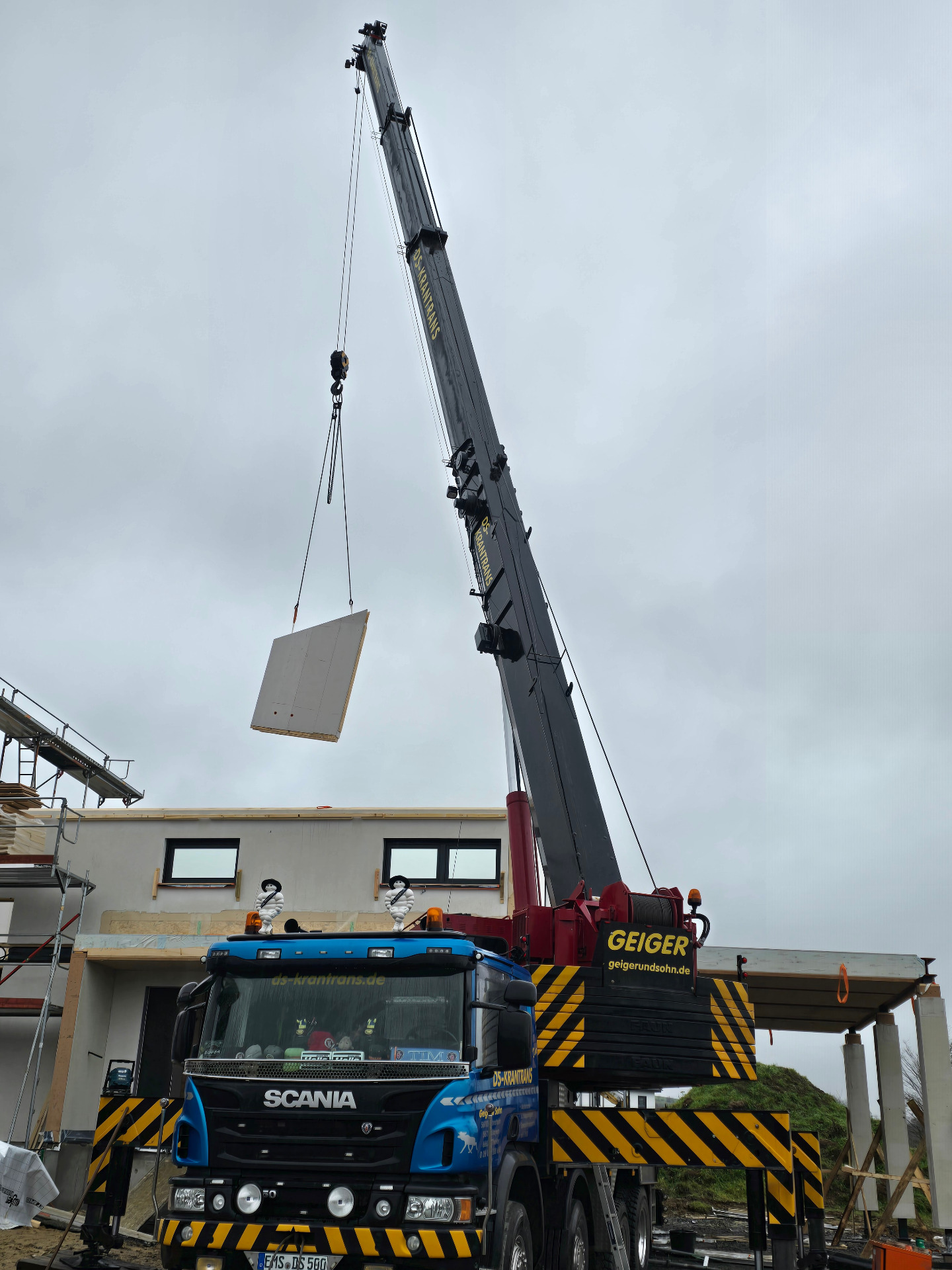 In der KW 50 war es dann tatsächlich soweit. In der Nacht waren bereits 2 LKW's aus Polen eingetroffen, die die Wände des Erdgeschosses enthielten